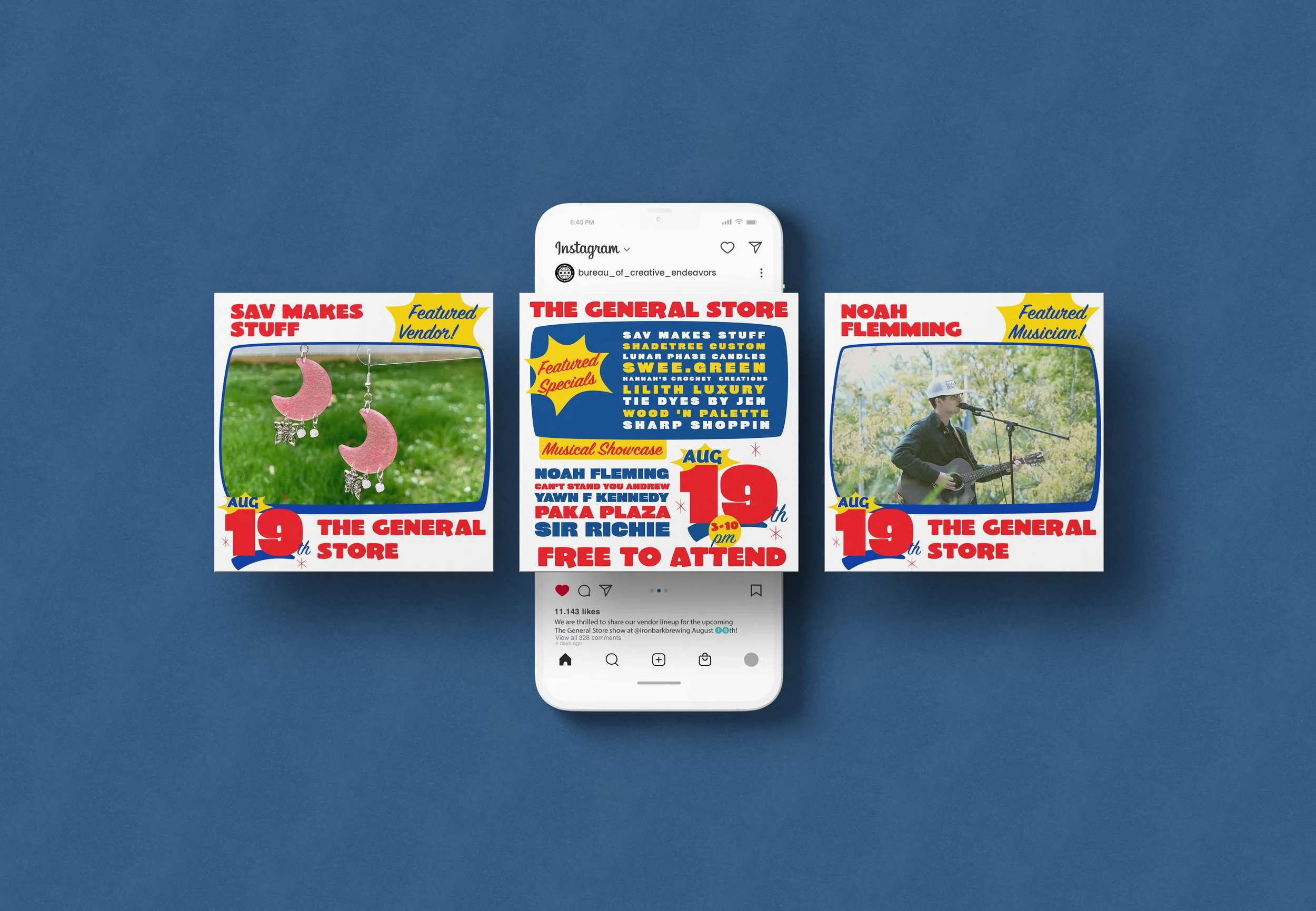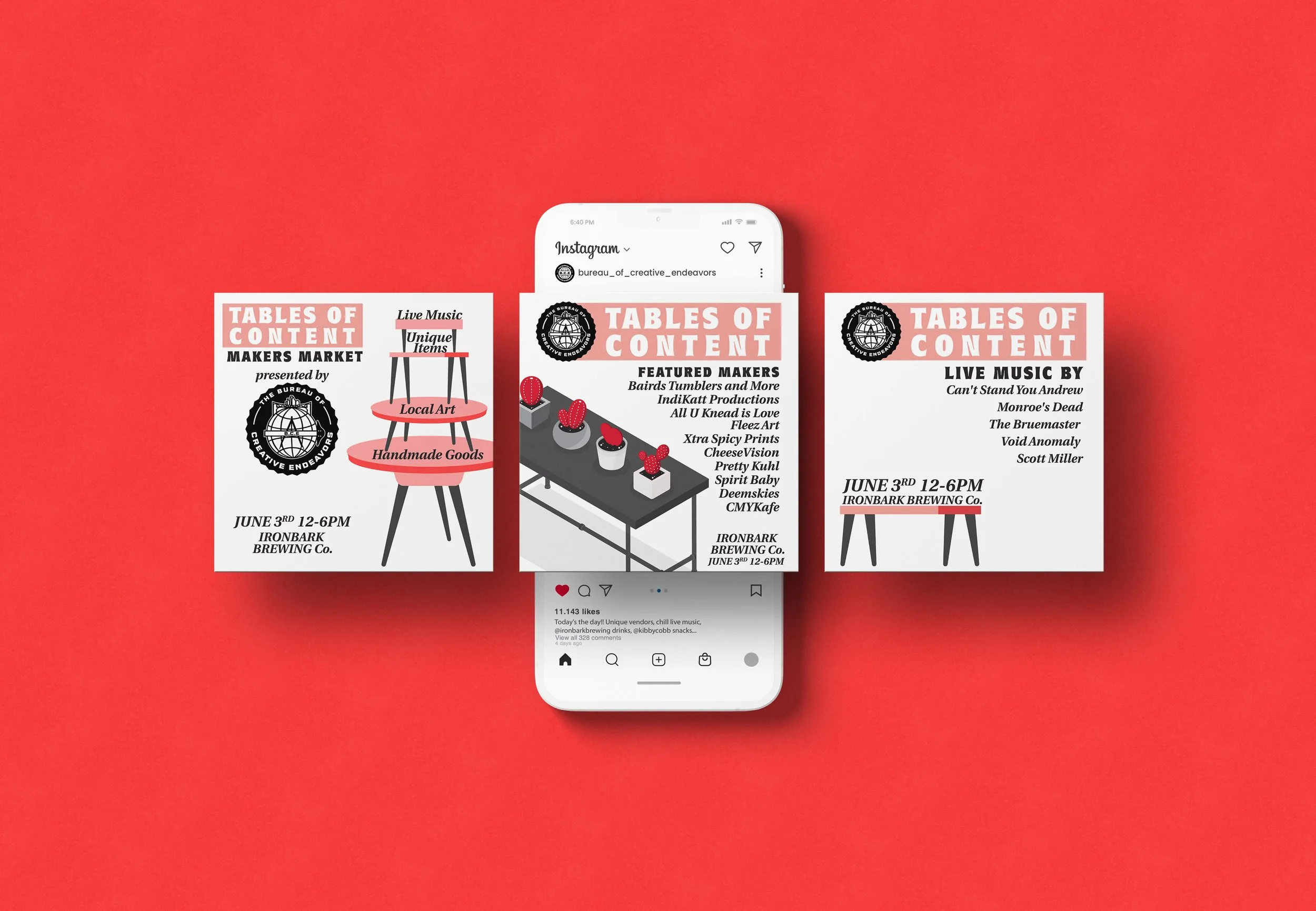 Frustrated with the local art scene and lack of opportunities to showcase and share work. Myself and two others decided to create our own events to do just that. Rather than being associated by our names, We created the Bureau as a neutral identity to promote our markets. See the event photos on Instagram HERE